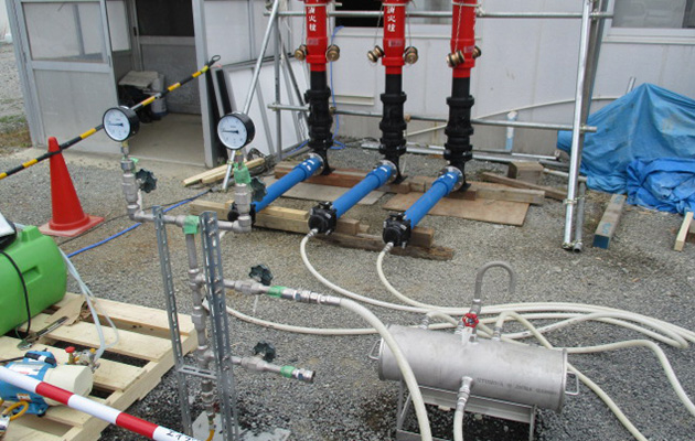 原子力施設の安全性向上を目的として、使用済燃料プールへの外部注水を可能にする配管の敷設や、配管および支持構造物の耐震強化などの安全対策設備の設置、さらに放射性物質の系外放出を低減するためのフィルタベント設備の設置を行っています。