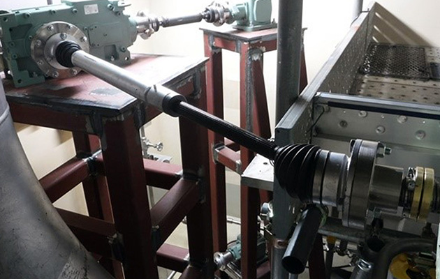 原子炉格納容器フィルタベント設備の空気作動弁遠隔操作として開発しました。減速機、ギヤ、等速ジョイントを組合せた構造により、多様な離隔距離や設置位置に対応可能です。また、加振試験で耐震性を確認しており、地震に強く相対変位にも対応します。