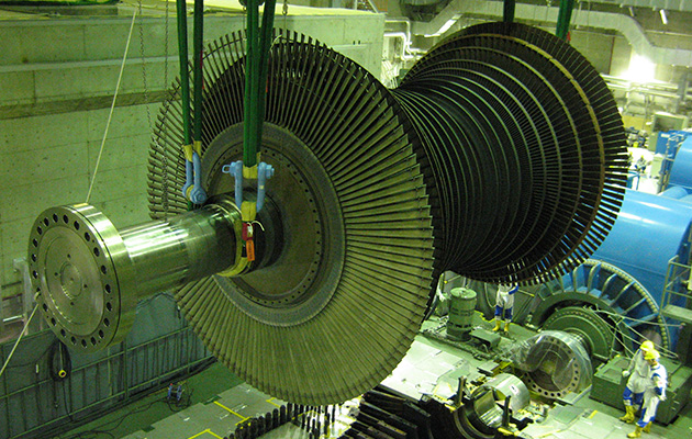 原子炉で発生した蒸気がタービンで安全に効率良く発電するために、タービン本体の点検・補修を行っています。また、取水設備等の関連設備についても点検・補修を行っています。