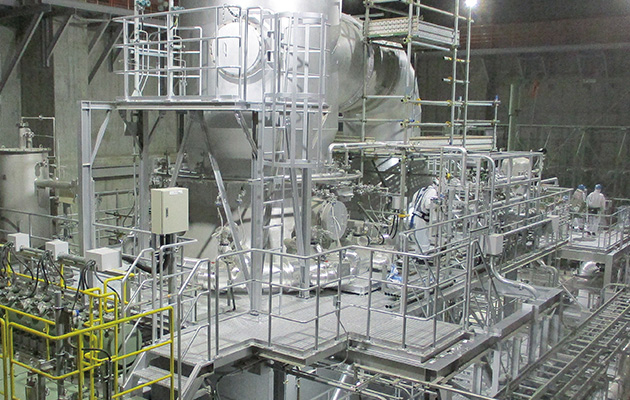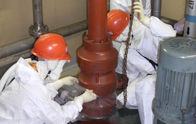 原子力発電所の放射性廃棄物処理設備に設置してある、ポンプや弁類、電動機、制御装置等の点検、補修を行っています。
