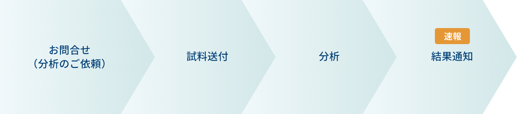 試料を受付した次の⽇から平均5営業⽇で分析結果の速報をメールにて通知します。速報後、分析結果報告書を郵送にてお送りします。