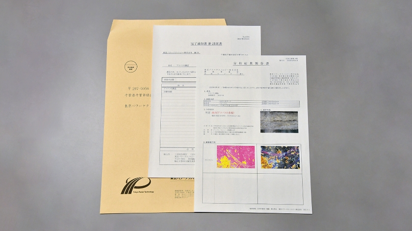 詳細は「アスベスト分析・調査」ページをご確認の上、問い合わせフォームよりお問い合わせ下さい。